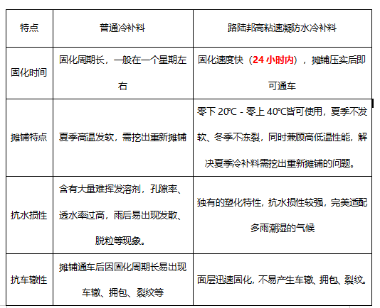 二、路陸邦高粘速凝防水冷補料在市場的優勢: