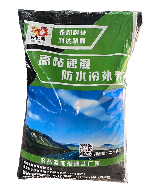 路陸邦高粘速凝防水冷補料是一種高分子有機聚合物道路修補材料,通過獨特的化學表面活性劑,在增塑劑、增強劑、增粘劑、抗水劑、穩定劑、稀釋劑、揮發劑等共同作用下改變了瀝青短暫的動力粘度,從而提高了較低溫度下的拌和性能。